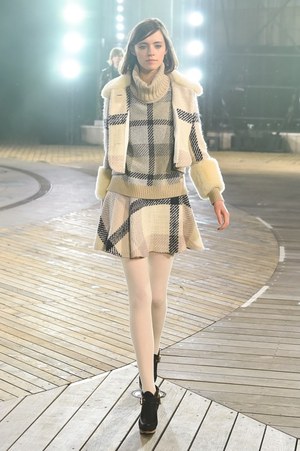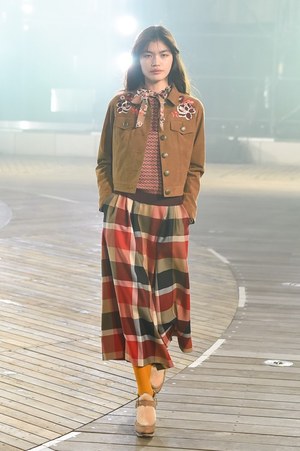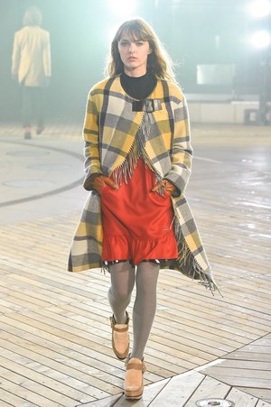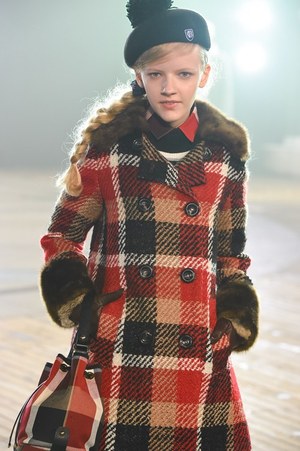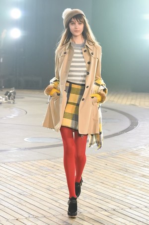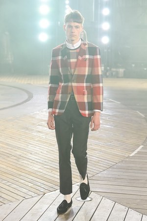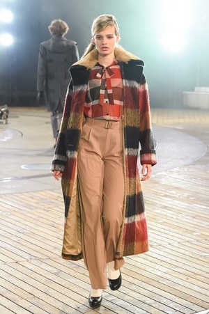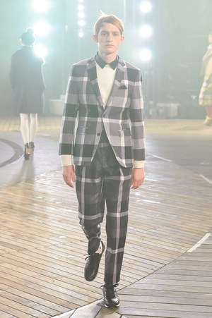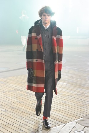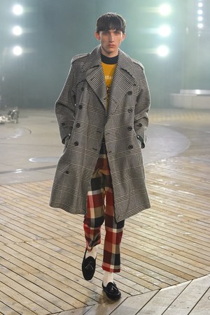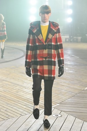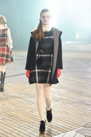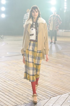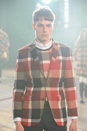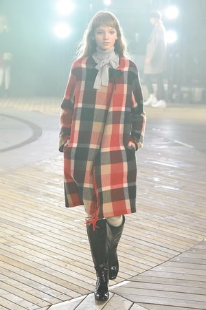 ブランドを代表する“クレストブリッジチェック”は昨シーズンに比べ170~200%拡大され、より存在感をアピール。ビビットなレッドやイエローの差し色とともに、コレクション全体に躍動感を与えた。