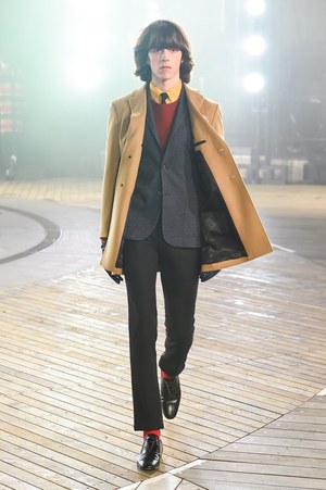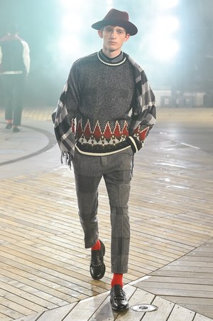 3シーズン目を迎える今季は、これまでよりもスタンダードを意識。三原自身が着たいと思えるものに近づけたというメンズウェアは、スーツやジャケットを基軸に。英国ヘリテージをベースに、柄入りニットやフーディなどを交差させて、シックな中に遊びを効かせる。