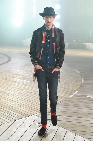 会場は、小雨がぱらつく六本木ヒルズアリーナ。「THE BAWDIES」をゲストに迎え、ライブパフォーマンスとともに最新ルックを披露した。
