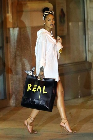 また、グッチの新アイコンとなった「スリッパシューズ」もアグレッシブな雰囲気に。ライトブルーとイエローのペイントをあしらい、ポップなデザインに仕上げられた。展開前ではあるが、この新コレクションには多くのセレブリティが着目。ビヨンセやマドンナが、新作バッグ&ウェアをコーディネートに取り入れている。