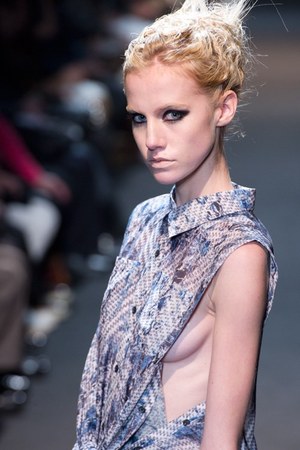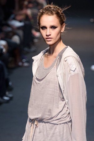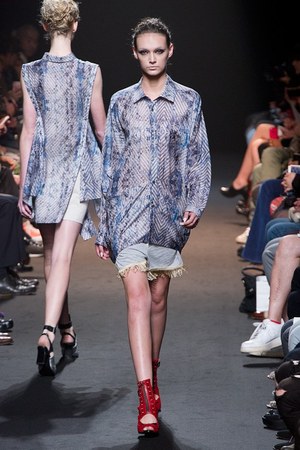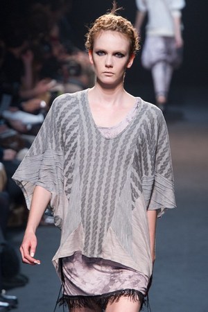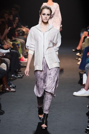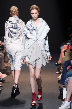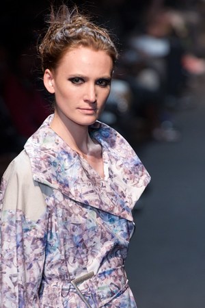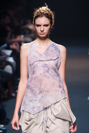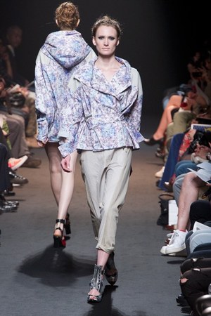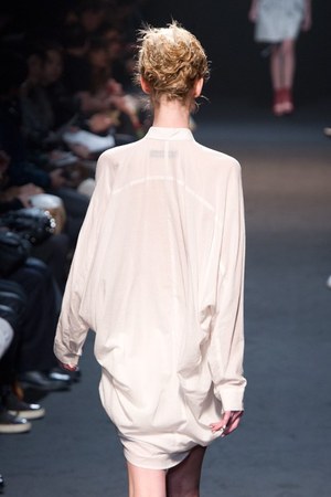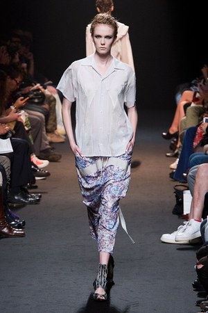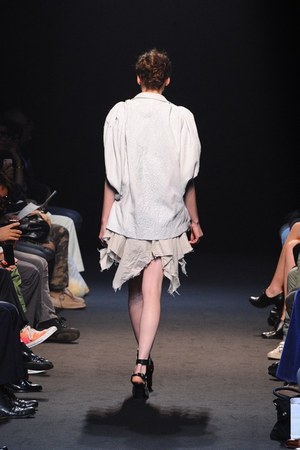 SHIROMA(シロマ) が2012年春夏コレクションを発表した。宇宙に閉じ込められたような会場の暗闇に光が差し込み、硬く響くフューチャリスティックな音楽にのせて、SHIROMAのデビューコレクションは幕を開けた。