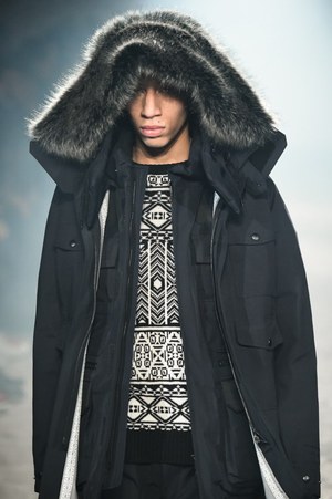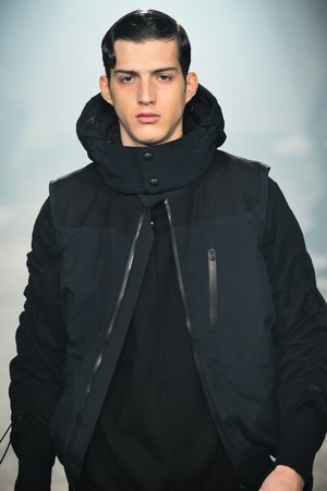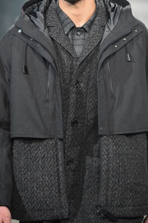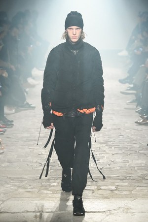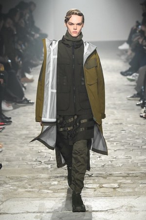 アップテンポのランウェイを小走り程のスピードでモデルたちが颯爽と歩いていく。身につけているワードローブは、ポケットやジッパーなどがありとあらゆるところに装備されている。ビックシルエットのマウンテンパーカーには止水ファスナーが至る所に。モッズコートはバックロングのフォルムで、ドローコードとボタンを取り付けた変形可能な仕組みだ。続いて小さなバッグが背中にまでところ狭しと並べられたフィールドジャケット、たっぷりのファーがあしらわれたモッズコート……多彩なアウターが現れるが、何れも過剰なまでの装備が取り付けられている。