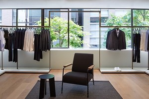 国内3号店となる銀座店は、2フロア558㎡の面接を誇る国内最大規模の店舗となり、ウィメンズ、メンズ、そしてキッズのフルコレクションを展開。店舗デザインは、日本の門を参考にしたアーチ型のエントランスやカットアウトされた窓が特徴的で、店内はロースチールとコンクリートの什器で演出した無機質な質感の内装が広がる。