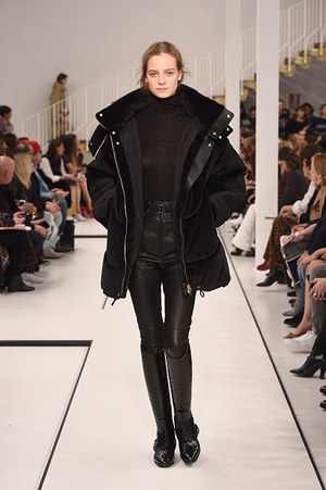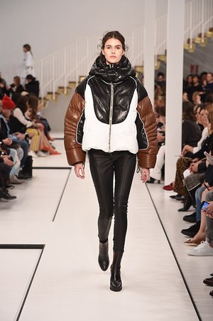 アイコンとなるのは、ビッグサイズのアウターだ。ボーイフレンドのを借りて着ちゃった!そんな可愛らしいシチュエーションをイメージしたピースは、ビッグショルダーで重量級。レザー仕立てのダウンコートや、アームだけレザー×ボディはナイロンというミックス素材のスキージャンパー風アウター、フード付きロングコートなど、フォルム・素材違いでバリエーション豊富に揃っている。ただ、ジグザグと可愛らしいステッチや色の切り替えなどによって、メンズライクになりすぎず程よい女性らしさを保たせたのがポイントだ。