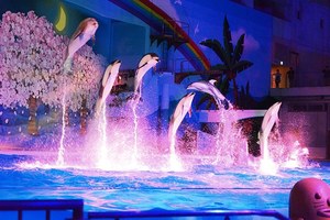 八景島シーパラダイスを訪れたらぜひ楽しみたい海の動物たちのショーも、春限定バージョンに。「アクアスタジム」では、3種類のイルカと海の生き物たちが、昼と夜で異なるショーを披露する。