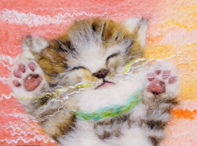 漉きの和紙に光を灯すと、猫の影と共に空間が優しく包まれる和紙のランプや、猫のモチーフに江戸切子を融合させた“猫切子”、シルクで描かれた猫の絵画など、猫好きにはたまらないアイテムの数々が、会場を猫一色に染める。