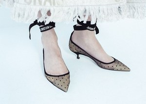 さらに、チュールパンプスもラインナップ。アンクル部分には「ジャルダン ジャポネ(日本庭園)」のリボンが光る。アクセサリーラインには、他にもシルクスカーフと「ミッツァ」スカーフも揃っている。