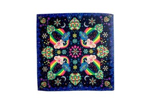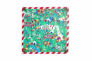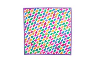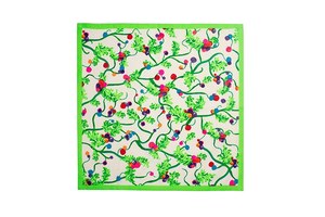 風呂敷のようにラッシュのアイテムを包んでギフトラッピングを楽しむことはもちろん、色鮮やかなデザインを生かして、スカーフとして身につけることもできる。