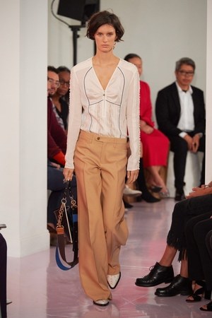 今シーズンのクロエは、胸元に縦横に施された刺繍や飾り穴など、アンティークで優雅なブラウスのディテールが光る。カラーパレットは、遠くに見えるかすかな光の色を彷彿させるホワイト、温かみを感じるピンク、レッド、ベージュなど。暖色系のやわらかなムードだ。