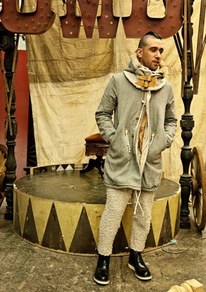 必然な動きから生まれる質感やシワを美しいとし、ひねりのきいたリアルクローズを提供する08sircus。無骨なワークスタイルを繊細でシックなものに見事に変換したコレクションだ。