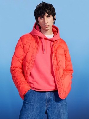 ユニクロ ユー2018年春夏コレクションのメインカラーとなるのは、空や海のブルー、森のグリーンなど自然からインスパイアされた鮮やかなカラーリングだ。そこにアクセントを加えるのがオレンジ、レッドといったはつらつとした色味。ボーダー模様やストライプなど、グラフィカルなパターンがコレクション全体にリズムを生んでいる。