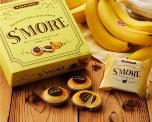 今回は、南米エクアドルにて日本人の田辺正裕が育てる「田辺農園バナナ」を採用した新フレーバーのバナナ味が登場。甘さとコク、程よい酸味が特徴のバナナを贅沢にフリーズドライ加工してパウダー化し、マシュマロと焼きチョコにプラス。バナナ本来の美味しさと、香り豊かな風味が楽しめるこだわりの一品に仕上がっている。