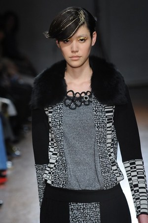 ミステリアスな東洋のイメージは、フォーマルカラーの黒と白で表現。モダンな幾何学柄ニットやCGグラフィカルなプリントのワンピースやスカートは、シンプルながらも遊び心溢れるデザイン。3Gの花柄プリントは、洒落たタキシードや軽やかなミニのスタイルで明るいムード。