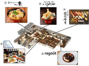 鳥焼き・蕎麦・おでん 一重(関西初)、天丼・天串・串カツ いしのや(関西初)、ニューヨーク デリ スタイル(全国初)、大阪梅田 花火寿司(全国初)、ラグー(全国初)