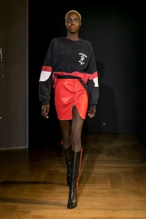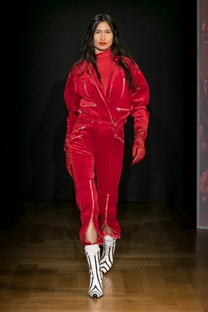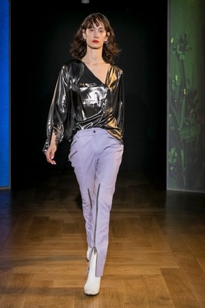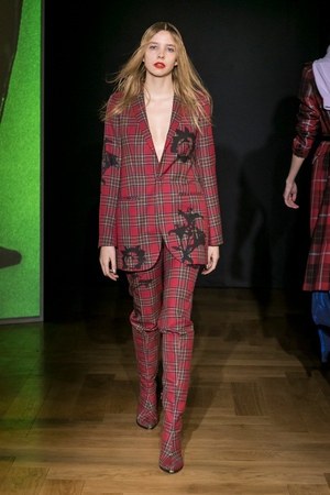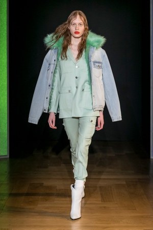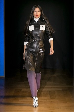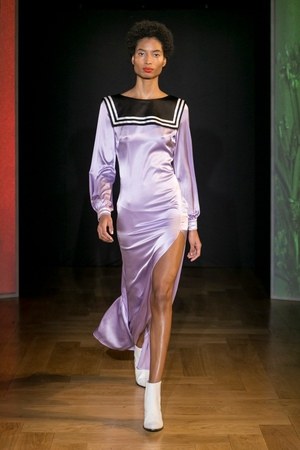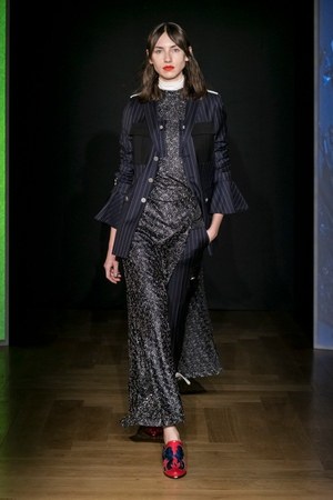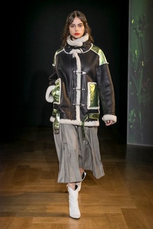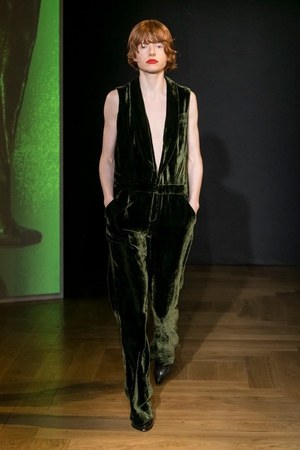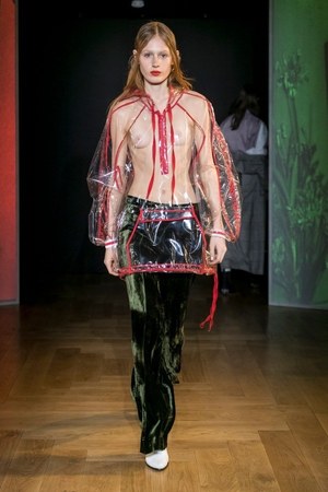 パンチの効いたピースが多く揃ったシーズン。グリーンのメタリックレザーを使ったパンツや、ヒップラインギリギリでカットオフしたレザーのミニドレス、ビニルのフーディコート、総スパンコールのトレンチコートなど、自由なクリエイティビティから生まれたウェアが揃っている。