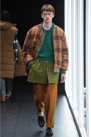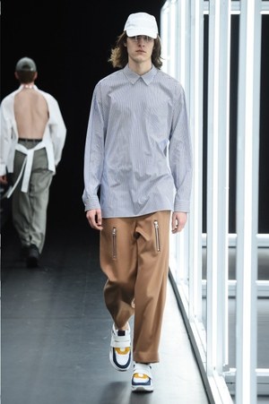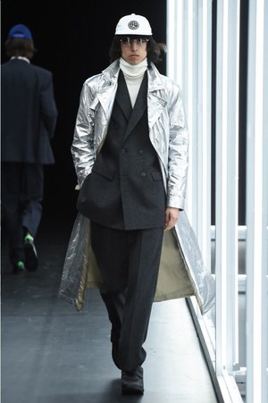 アイテムこそ個性的でユニークだが、シルエットは紳士的でキレイ。パンツは細身が主流、飛び抜けてビッグなシルエットのトップスもない。スッと収まった印象はあるのに、確実に新しく、見たことのないスタイリングがそこには決まっていたのは、"化学反応"によって生み出された目新しいアイテムによる効果だった。