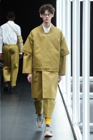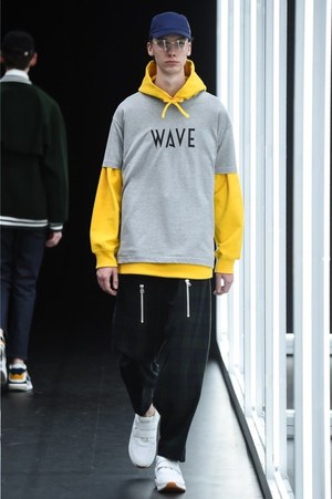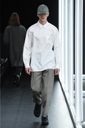 ショー会場に組み立てられた白く輝く箱は実験室をイメージしたものだろうか。今季のテーマは「ノー トーク イン ザ テストハウス(No Talk In The Test House)」。"会話の無い実験室"で作られたコレクションは、デザイナー・オオスミタケシと吉井雄一が考える"今、現在のベーシックスタイル"が表現された。