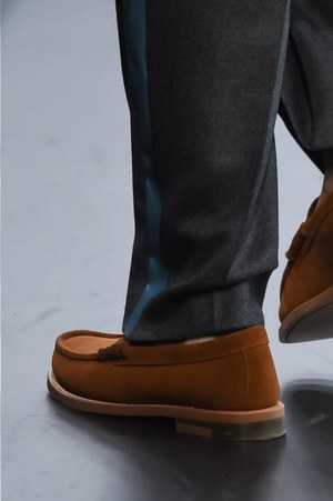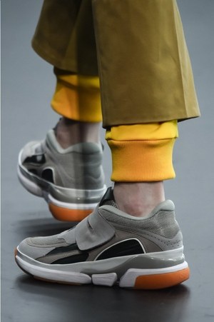 ルックの大半の足元を固めたのは「ダッドシューズ」。まさに"今、現在"を象徴するようなボリュームのあるスニーカーはしっかりとトレンド感を演出していた。