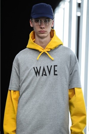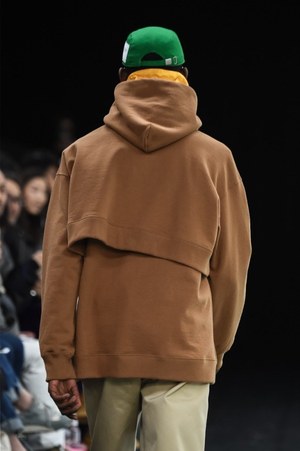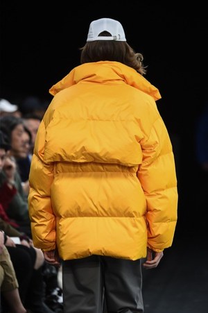 既存のウェアを切り取って、取り付けて、繋ぐ、交ぜる。服を作る過程での試行錯誤の跡がそのままアイテムの上に残されたようなピースも多かった。スタジャンをプルオーバータイプに変形させたかと思えば、その上にまた上半分を切り取ったスタジャンをパーツとして取り付ける。それは不思議でアバンギャルドな、まるで"実験途中の偶然の産物"のようだった。