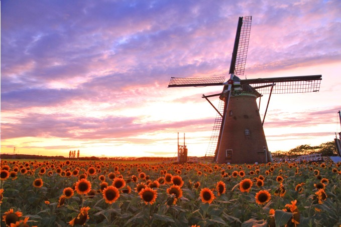 オランダ風車がシンボルの「佐倉ふるさと広場」では、7月上旬頃から、オランダの画家・ゴッホにちなんだ名前のひまわりが見ごろを迎える。約1万5000本のひまわりが咲き誇る、圧巻の情景を楽しむことができる。
