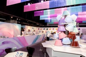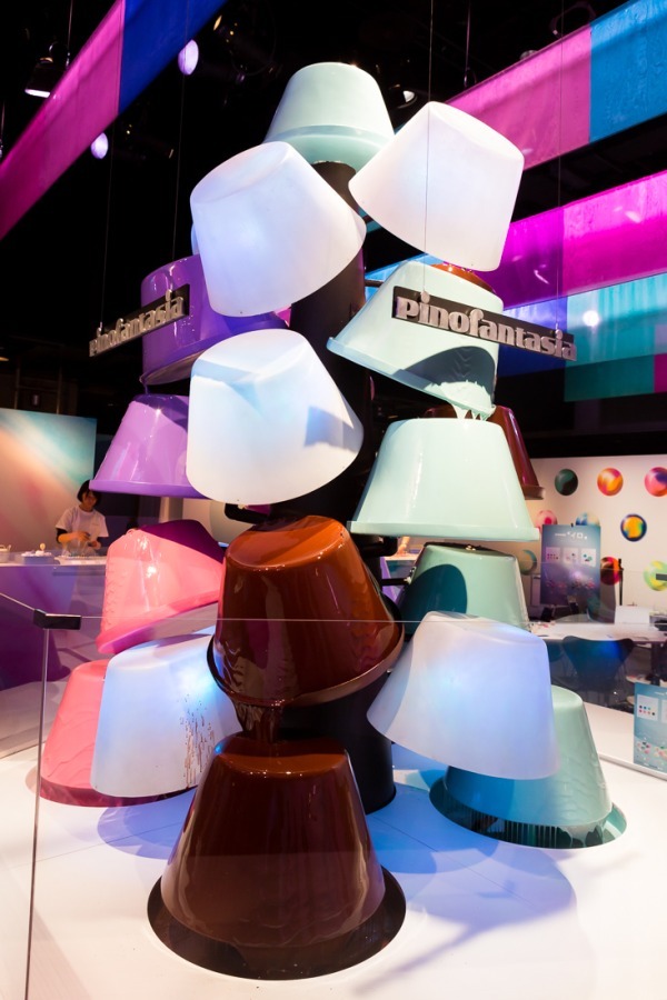 なおroom"イロ"では、地上約3メートルにも及ぶ巨大な"ピノファウンテン"が設置されている。カラフルなピノをモチーフにしたこのオブジェには、本物のチョコレートソースが流れており、その甘い香りが会場いっぱいに広がっている。オリジナルピノを作成した後には、この"ピノファウンテン"の前で記念撮影をしてみてはいかがだろう。