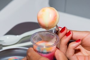 room"イロ"では、カラフルなチョコレートソースにピノをディップして、自分だけのオリジナルピノを作ることができる。