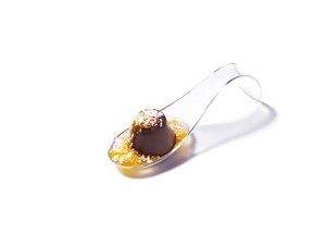 3、ブレンドしたチョコレートソースの中に、取りだしたピノアイスをディップしてコーティング