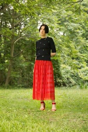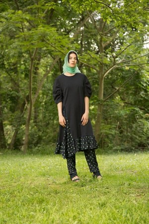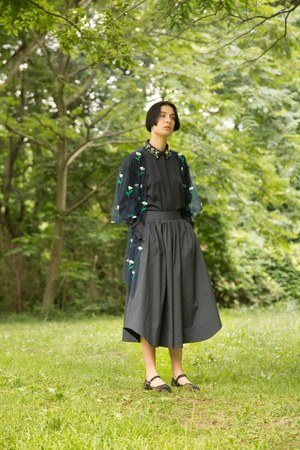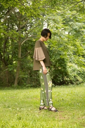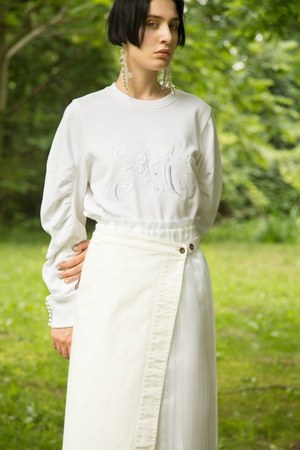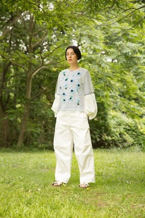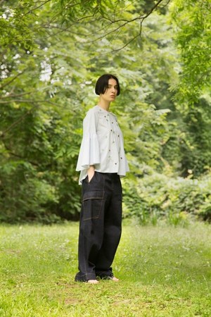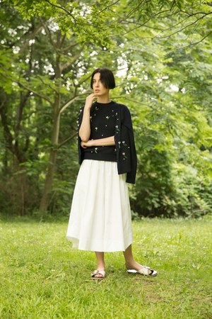 ボトムスはボリューミーなシルエットが主流だが、デニム地のワイドパンツや、透け感のあるロングスカートなど、異なる印象を与えるものばかりだ。