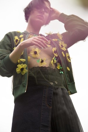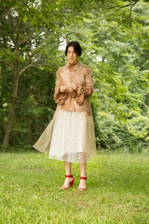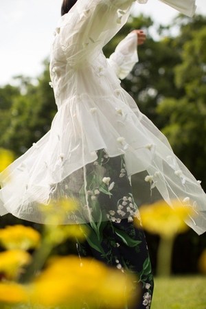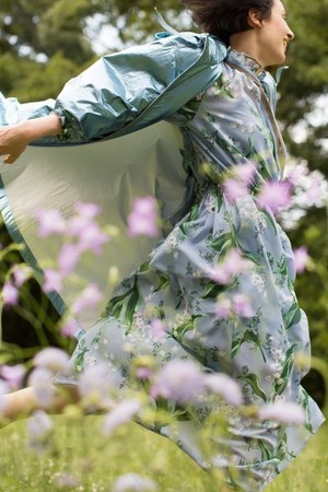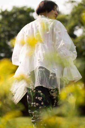 アウターはシースルーのトレンチコートや、ナイロン地のライダース、チュールを採用したジャケットなど、バリエーション豊富に用意。そよ風を感じさせる軽やかなディテールが、自由で個性的な装いを演出してくれる。