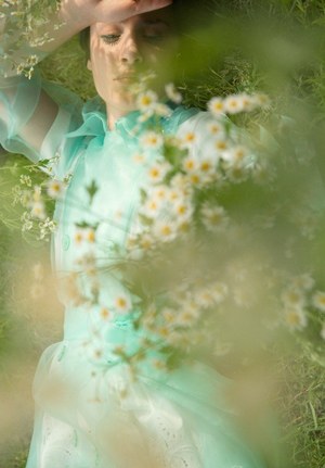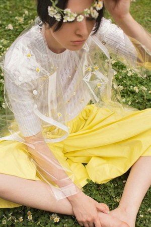 映画のタイトルでもあり、劇中にも印象的に取り入れられているひなぎくの花は、ミュベールのアイコンである「すずらん」や鮮やかな「アネモネ」に姿を変えた。大柄のプリントやビジューを用いた刺繍、立体的なコサージュとして、様々なピースの上で花を咲かせる。