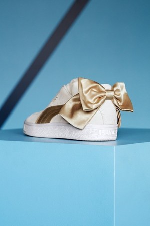 プーマ(PUMA)の人気シューズ「スウェード ボウ」から、新作「スウェード ボウ バーシティ」が登場。上質なスウェードのアッパーに、ゴールドに輝くサテン地のリボンを組み合わせている。