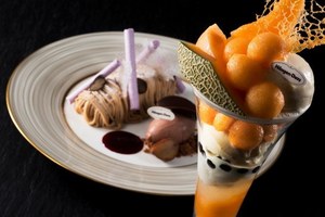 まず、8月には輝くようなオレンジの新篠津産ルピアレッドメロンと、ハーゲンダッツの「バニラ」を用いたパフェや濃く深い味わいの「グリーンティー」を用いたフルーツグラタンを用意。一方、秋が近づく9月には「チョコレート」をトリュフ入りのマロンクリームで仕上げた大人のモンブランに添えて提供。葡萄やりんごなど秋の果実を用いた絶品スイーツも登場する。