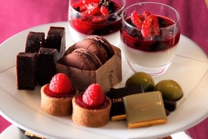 メニューには、濃厚なチョコレートの苦味と甘みを存分に味わえるガトーショコラをはじめ、甘酢っぱいラズベリーとチョコレートが絶妙なタルト、そしてチョコチップのスコーンなどを用意。さらに、キッシュやサンドウィッチなどのフードメニューも楽しめる。