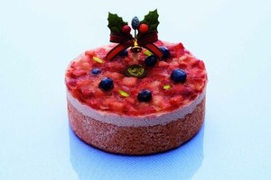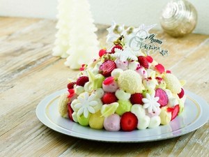 フランス仕込みの技術と日本の繊細な感覚が光る清澄白河の名店・アン ヴデットは「ブランシュ」を限定50台で展開。ストロベリームースやピスタチオのクリームを、真っ白なクリームで包み込み、あたたかみのある北欧のクリスマスを表現した。