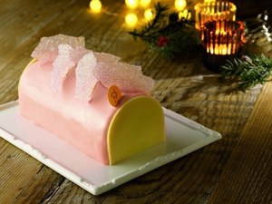 「ゴージャス派」には、ピエール・エルメ・パリ(PIERRE HERMÉ PARIS)の「ビュッシュ クリスタル」を限定50台で用意。レインボーカラーのホワイトチョコレートとクリスタルのような輝きを放つデコレーションが、存在感を放っている。香り豊かなローズクリームに、軽い歯ごたえと柔らかな食感を併せ持つマロンを合わせた。