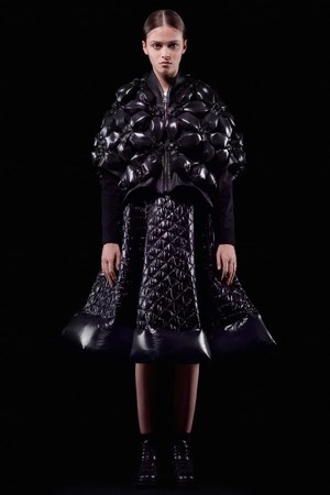 ノワール ケイ ニノミヤ(noir kei ninomiya)の二宮とモンクレール(MONCLER)による「6 モンクレール ノワール ケイ ニノミヤ(6 Moncler Noir Kei Ninomiya)」のダウンジャケットは、漆黒のカラーパレットとデコラティブなディテールが重厚感を醸し出している。