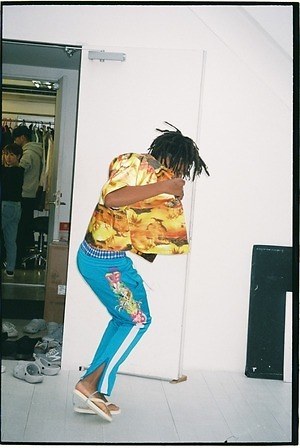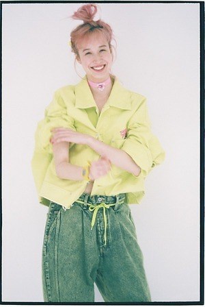 トップスはクロップド丈かつワイド幅によって、まるで身体から飛び出るようなシルエットを築いている。ジャケットはオーバーサイズで、袖はまるで羽根が生えたみたいに大きく広がっている。ボトムスの中には、クレイジーパターンのものや、わざと大きめに身幅をとったもの、さらに立体裁断のデニムパンツなど提案。身体と洋服の間の空間作りもまた今季のテーマにリンクしている。