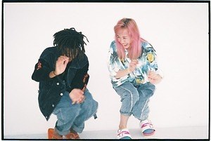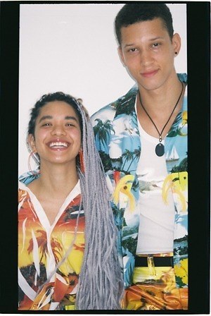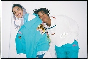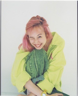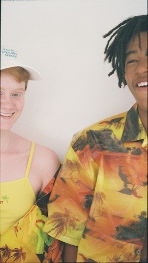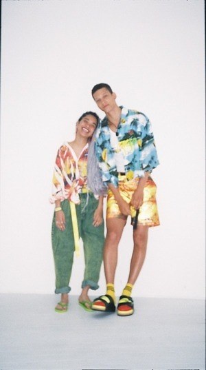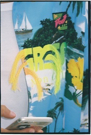 ポップで楽しいカラーパレットのなかには、実は3Dの要素がいっぱい。アロハシャツには、ピンクからグリーンに移り変わるカラーパレットでPINK(ピンク)とGREEN(グリーン)のロゴをあしらった。ロゴからは刺繍糸をあふれ出させるように立体的に施して、ディテールで3Dを表現している。