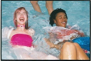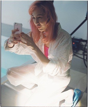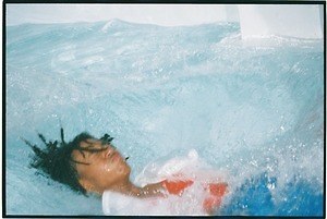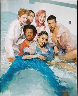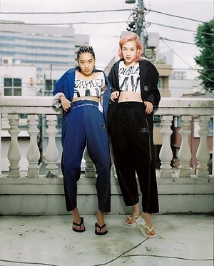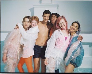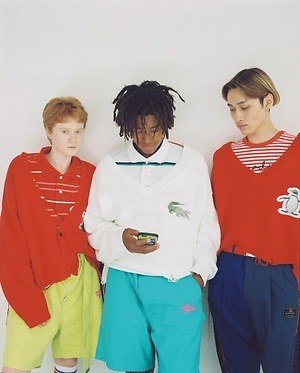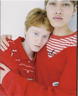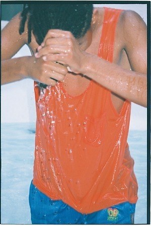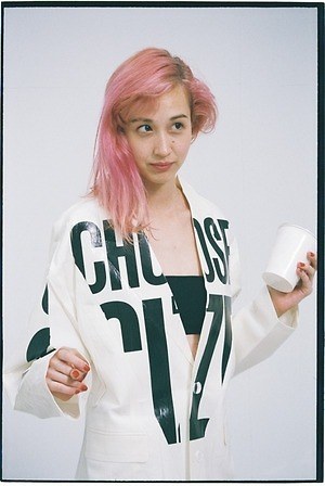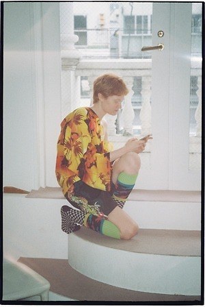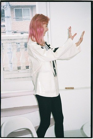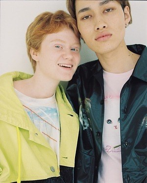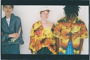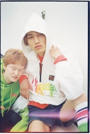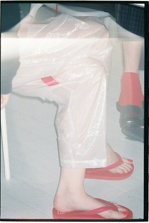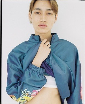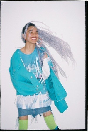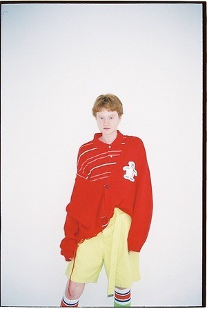 3D要素は探せば探すほど目に留まって、例えば、随所に採用したレンチキュラーによるモチーフもテーマを象徴している。さらに、赤と青の”ANAGLYPH”のロゴ入りトップスはそれ単体ではなく、3D眼鏡付きという3Dが体感できるセット仕様だ。“ANAGLYPH"、つまりは赤と青緑のレンズの眼鏡を通して見ると像が立体的に浮き出す仕様のことを指すのだが、まさしく今回のTシャツではそれが実現されている。思わず笑ってしまうようなアイテムに、デザイナー井野のファッションを楽しむ心が表れている気がする。