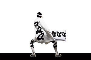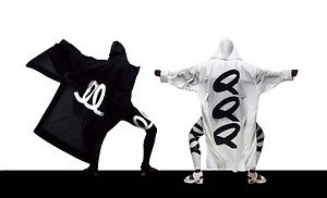 展開されるのは、「CONTINUOUS SYMBOL」シリーズと「CIRCLE」シリーズの。デザインのモチーフとして、「CONTINUOUS SYMBOL」シリーズには『連続する記号』を、「CIRCLE」シリーズには『円または、円の遊戯』という作品を選んだ。それぞれの作品がもつ躍動感とユーモア、温かい印象を活かしながらも、シンプルでスポーティーに仕上げた服は、着る者に“アートを纏う”ような感覚を抱かせる。一方で、身体の動きに合わせて流れる優美な布の表現が、グラフィックデザインに新たな魅力を与えてくれる。