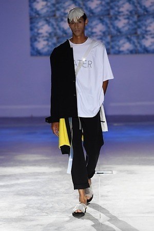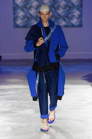 ファーストコレクションのテーマは「水」。今シーズンのアイテムは、そのテーマを実直に反映しており、特にネオプレンがキー素材となって登場する。また、目の覚めるようなイエローやブルーの鮮やかなカラーリングと、そこに加わるクリア素材も魅力だ。