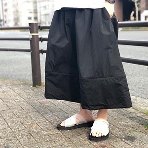 まるでスウィムウェアのようなシャリ感のあるワイドシルエットのパンツは2WAYで楽しめる。ひざ下部分にコンシールファスナーが配されており、丈の長さが調整可能だ。