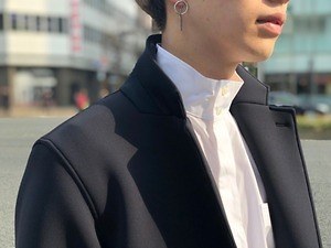 ハリ感のあるネオプレン素材を用いたフーディやジャケットは、独特のシルエットで身体を包み込む。もともとパタンナーであった丸龍のパターンへの熱量が惜しみなく注がれた、立体的なフォルムは、身体と服との空間が絶妙だ。クラシックなジャケットがネオプレンによって近未来的なデザインとなっているのも面白い。
