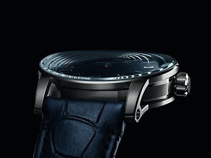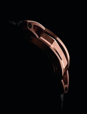 一見するとクラシックな丸型のケースだが、ケースの間に八角形のミドルケースを組み合わせることで、本モデルを象徴するデザインに仕上げた。風防は、反射防止加工を施したサファイアクリスタル素材を採用。大きくカーブした形状も、モデルを象徴するディテールだ。