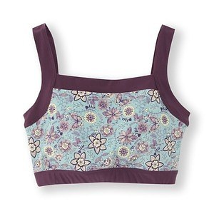 ブラやタイツには、イラスト調の花柄が落ち着いた色味であしらわれている。また、バイオレットとブラックの2色展開となるショーツは、ウエストのリブを太めにしてボクシングパンツの様に仕上げた。