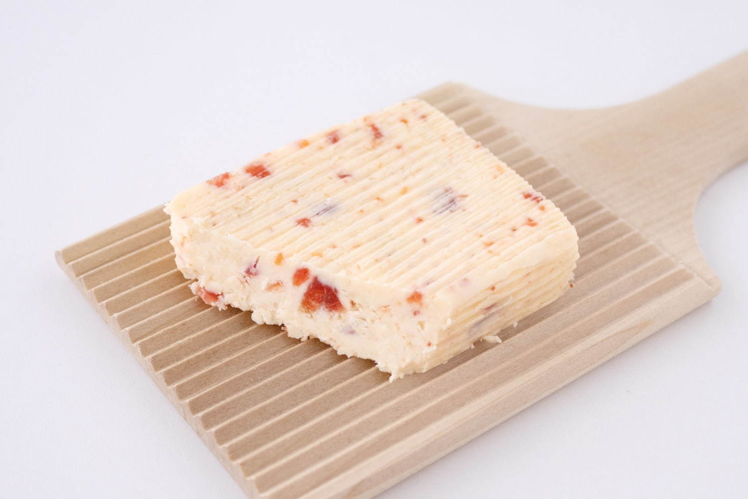そんな「カノーブル」から今回登場するフレーバーバター「令和」は、新元号「令和」の出典である『万葉集』の一文からインスピレーションを得たもの。 初春の令月、 美しい空気、 和やかな風、 花咲く梅、 蘭の薫りをキーワードに、梅の実と和三盆、アクセントにカリカリ食感の梅の酢漬けを練り込み、紅白の色が鮮やかな仕上がりとなっている。