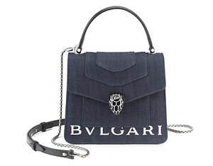 蛇のしなやかな曲線を再現したデザインが魅力の「セルペンティ」。デザイナーに藤原ヒロシを迎えた「BVLGARI X FRGMT」コレクションでは、「セルペンティ」にストリートファッションの代名詞“デニム生地”をブランドで初めて採用した。一方、蛇の頭を模したクロージャ―など、対称的な高級感のあるパーツを組み合わせることで、意外性を残したまま洗練されたアイテムに仕上げている。