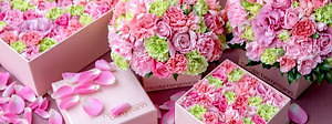 ・母の日限定フレッシュフラワーボックス S 4,320円、M 7,560円