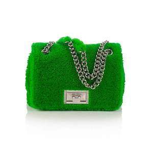 ジミー チュウ(JIMMY CHOO)ではアシュリー・ウィリアムズ(Ashley Williams)とコラボレーションしたチェーンバッグを用意。アイコニックな「ヘリア(HELIA)」ショルダーバッグにもこもこのシアリングを取り入れたもので、ビビッドなグリーンでより一層ポップに仕上げている。