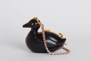 トム ブラウン(THOM BROWNE)からは、プレッピーの伝統的なシンボルである“アヒル”モチーフのショルダーバッグが登場。まるで本物のような立体感がある、ミニサイズのチェーン付きショルダーバッグを用意する。